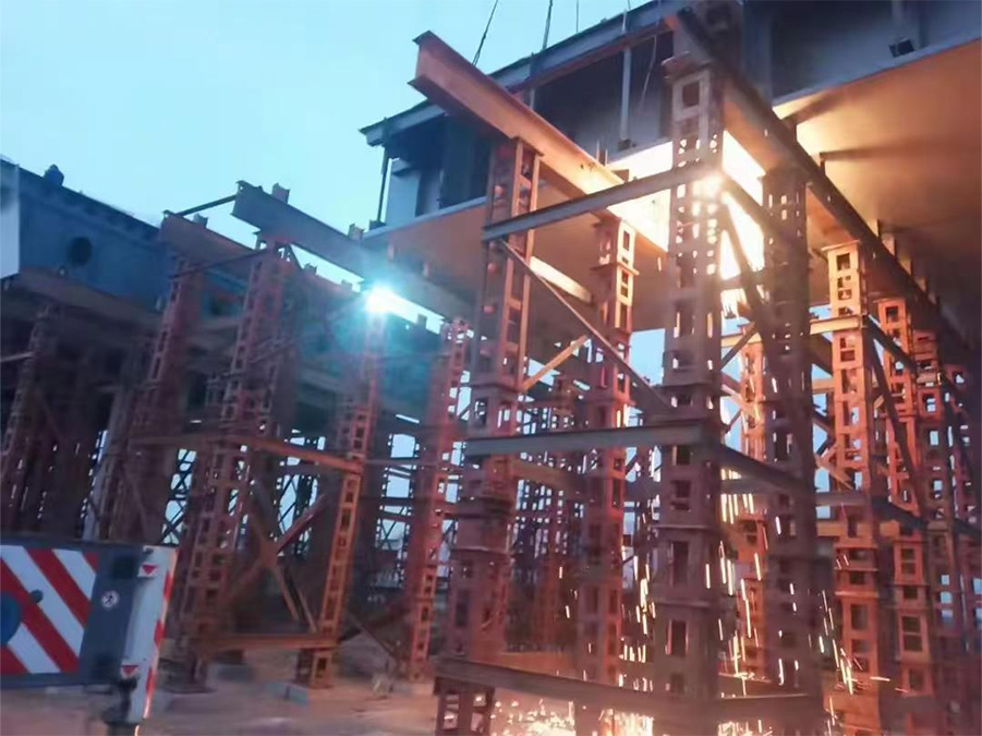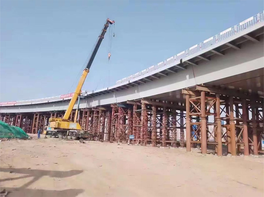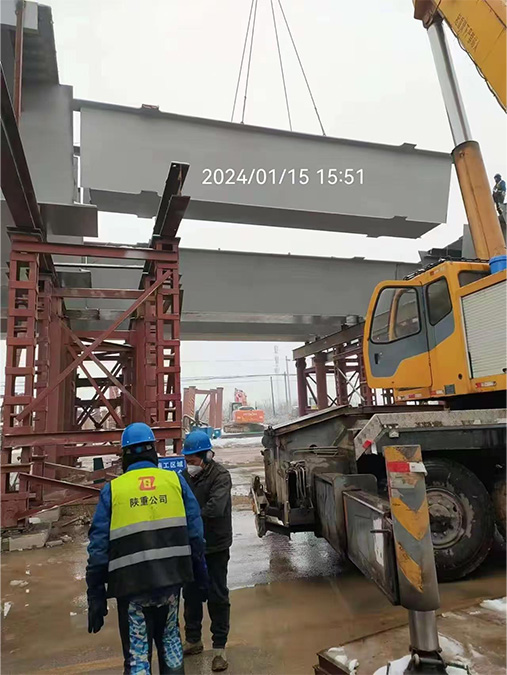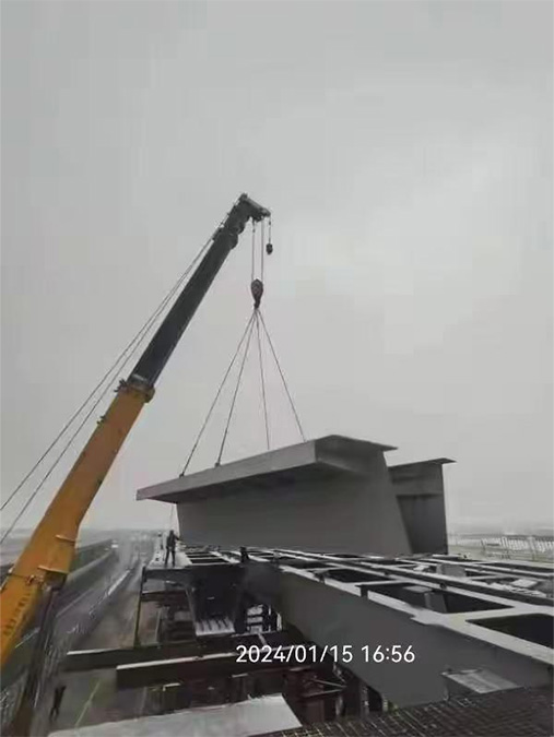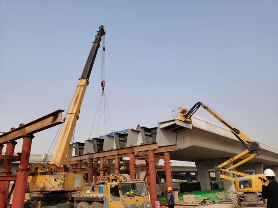 陜西重型機(jī)械制造有限公司承擔(dān)的航站樓出場道路高架橋項(xiàng)目中的400多塊鋼箱梁,其中50%以上的鋼箱梁為新式疊合梁,該疊合梁的結(jié)構(gòu)復(fù)雜程度和單件重量以及多變的外形,為陜重公司的首次加工和安裝,技術(shù)難度大。該項(xiàng)目的參建,對陜重公司鋼結(jié)構(gòu)橋梁的制作和安裝具有劃時代意義。